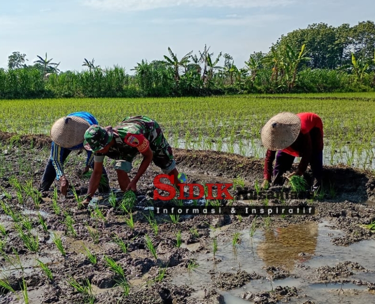 Babinsa Sumberrejo Bojonegoro Tanam Padi Bersama Petani