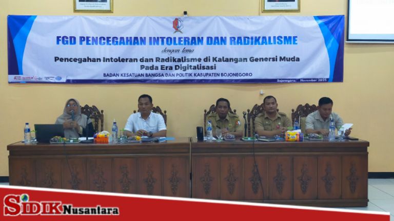 Bojonegoro, sidik nusantara – Badan Kesatuan Bangsa dan Politik (Bakesbangpol) Kabupaten Bojonegoro menggelar Forum Group Discussion (FGD) bertema “Pencegahan Intoleransi dan Radikalisme di Kalangan Generasi Muda pada Era Digitalisasi”, Selasa (25/11/2025). Kegiatan ini digelar sebagai upaya memperkuat pemahaman generasi muda agar lebih bijak dalam menyikapi dinamika sosial maupun perkembangan teknologi informasi.