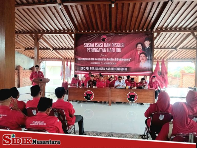 Bojonegoro, sidik nusantara – Dewan Pimpinan Cabang (DPC) Partai Demokrasi Indonesia (PDI) Perjuangan Bojonegoro menggelar Sosialisasi dan Diskusi Peringatan Hari Ibu yang bertempat di Panti Marhen Dr Taufiq Kiemas jalan HOS Cokro Aminoto,Jetak Bojonegoro, Rabu (31/12/2025).