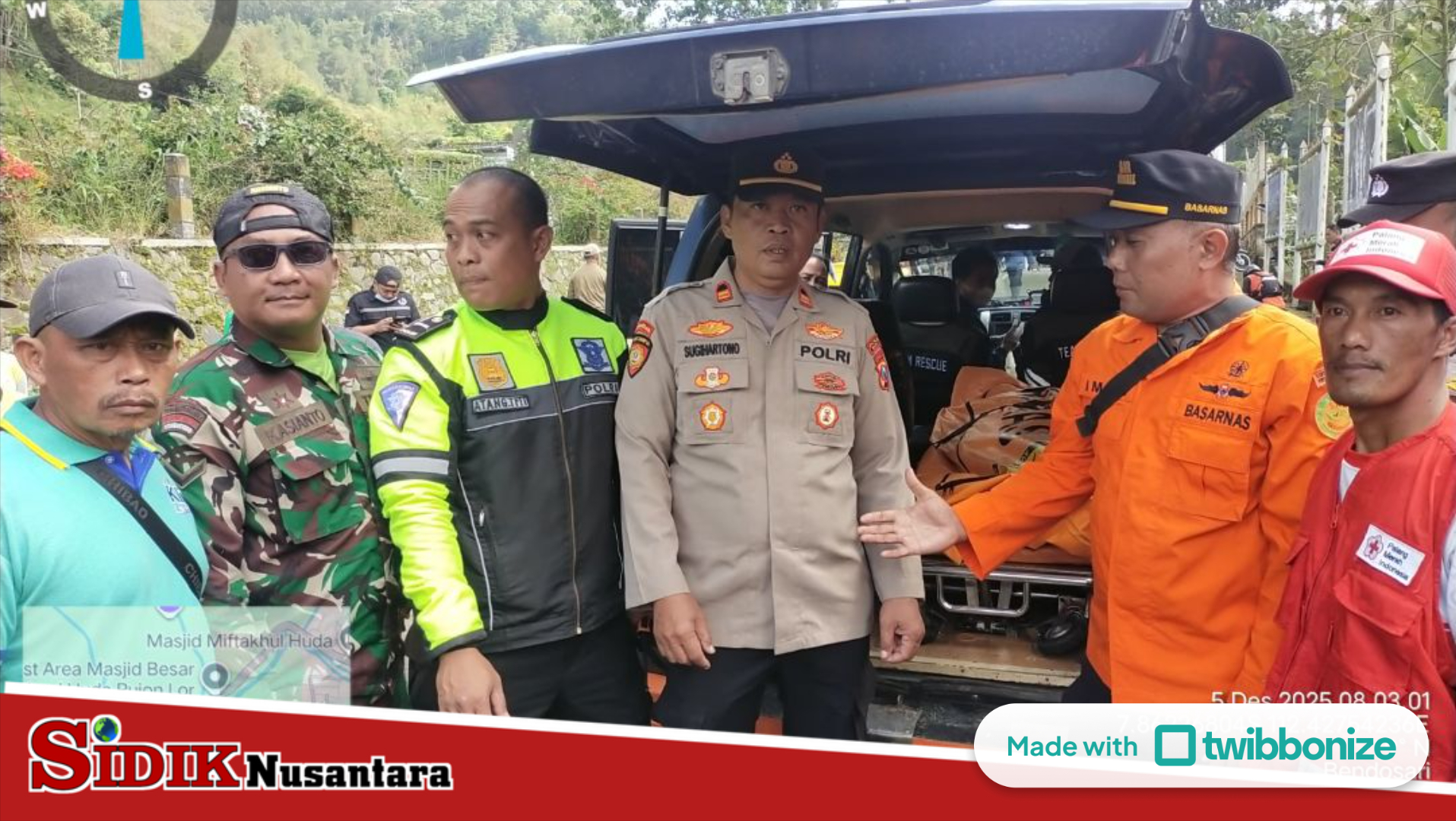 BATU,Sidik Nusantara – Kerja keras petugas Polres Batu bersama relawan, Tim SAR dan BPBD dalam mencari keberadaan Seorang pengendara motor bernama Razza Zarror Aryadita (17), terlibat kecelakaan saat melintas di Jalan Raya Abdul Manan Wijaya, Desa Sukomulyo, Kecamatan Pujon, Kabupaten Malang membuahkan hasil.Jum’at (5/12/25)