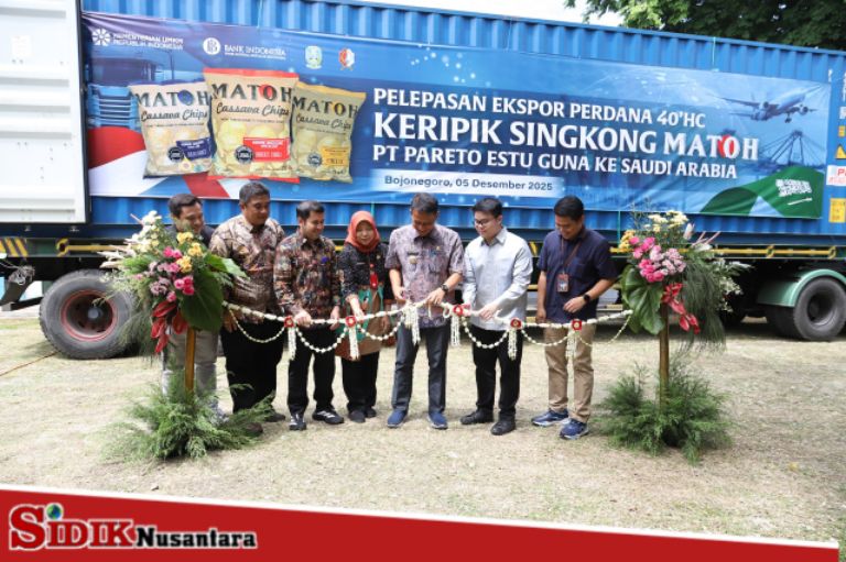Bojonegoro, sidik nusantara — PT. Pareto Estu Guna, perusahaan industri consumer goods berbasis healthy food yang berlokasi di Jalan Raya Kabunan Balen, Bojonegoro, resmi melepas ekspor perdana produk keripik singkong premium “Matoh” ke Arab Saudi. Pengiriman satu kontainer penuh ini menjadi tonggak penting bagi UMKM lokal untuk masuk ke pasar internasional, dengan nilai ekspor mencapai USD 17.500.