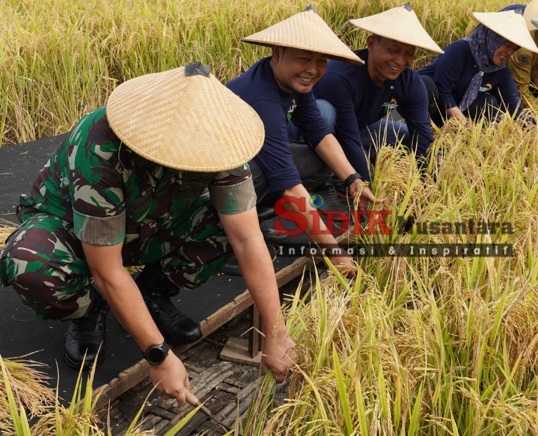 Sidik Nusantara, Bojonegoro –   Komandan Kodim (Dandim) 0813 Bojonegoro Letkol Inf Dedy Dwi Wijayanto, ST., turut mendampingi Bupati Bojonegoro pada kegiatan panen padi varietas gamagora 7 dilahan demplot Kelompok Tani (Poktan) Tani Subur II Desa Bayemgede Kecamatan Kepohbaru Kabupaten Bojonegoro Jawa Timur, Sabtu (28/2/2026).