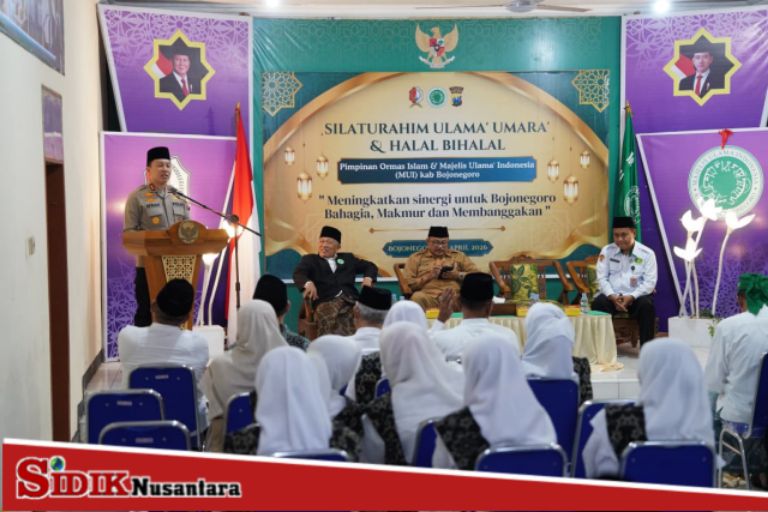 Bojonegoro, sidik nusantara – Kapolres Bojonegoro AKBP Afrian Satya Permadi menghadiri kegiatan Halal Bihalal Keluarga Besar Majelis Ulama Indonesia (MUI) Kabupaten Bojonegoro, Selasa (14/4/2026). Kegiatan tersebut digelar di Aula Kantor Forum Kerukunan Umat Beragama (FKUB) Kabupaten Bojonegoro, Jalan Trunojoyo, Kecamatan Kota Bojonegoro.